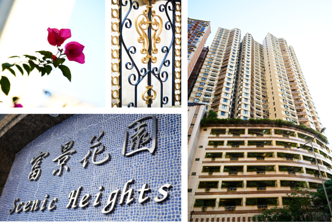 富景花園座落港島半山高尚住宅區,干德道58號A-B,前臨維港,兩岸風光一覽無遺,每當夜幕低垂,萬家燈火,閃耀生輝,譽滿世界之「東方之珠」呈現眼前,景物怡情,美不勝收。附近名校林立、並有超級市場、銀行及店舖等,提供日常生活所需,往中區車程僅需數分鐘,購物、交通、子女就學無不稱便,為不可多得之理想居停。